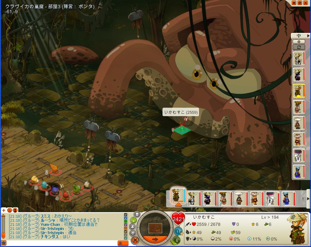 いかDのときは、キノコリングの代わりにゼリング(知性つき)を