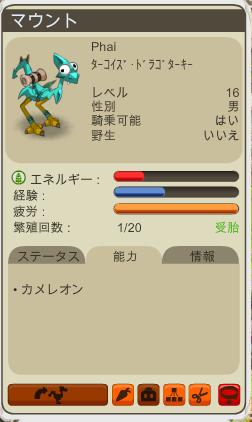 2つ能力付いたら、100まで育てようと思う。 ムリならカメと重量どっちも100にしちゃおうか!