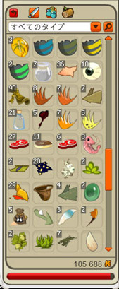グリフィン(11680):とにかく5キャラの中で一番気に入ってる子で、街をずっと走り回っている。マケ補充、マケチェック、商品製作等が主なお仕事。必要な素材(よろず、宝石、弓)以外は持たせたくない。ドップル周りも再開したい・・。知性&精神振りの水エニ(謎)70台 4職100