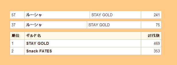 ギルド別ボス討伐数ランキングというのもあって、確認してみると、なんと