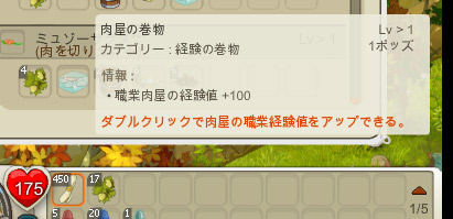 レア肉は種類がいくつかあるのですが、力スクロと同じで、肉屋で食用肉の状態にしたら、使えます。 最大100まで1上がるので、力フルスク考えてる人は習得しても損のない職かとb