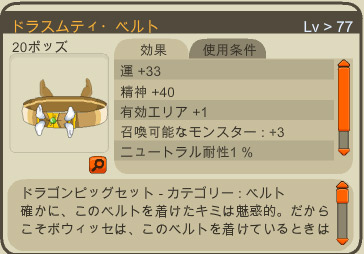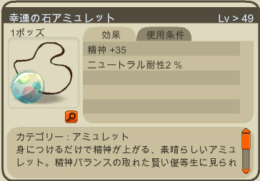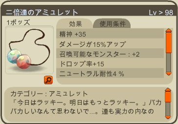 精神35まで上がって尚且つモンスが+2 ドロップが15増えるなかなか良い子。