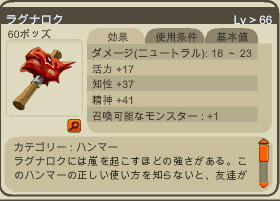 ハンマーはモンス+1ついてて精神多めなラグナロク(未魔術)。