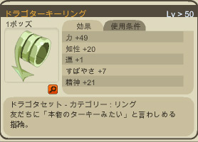 装備条件が精神極オサモにはキツイ 知性>40 力>40なのでドラゴターキーリングで条件満たしてます。